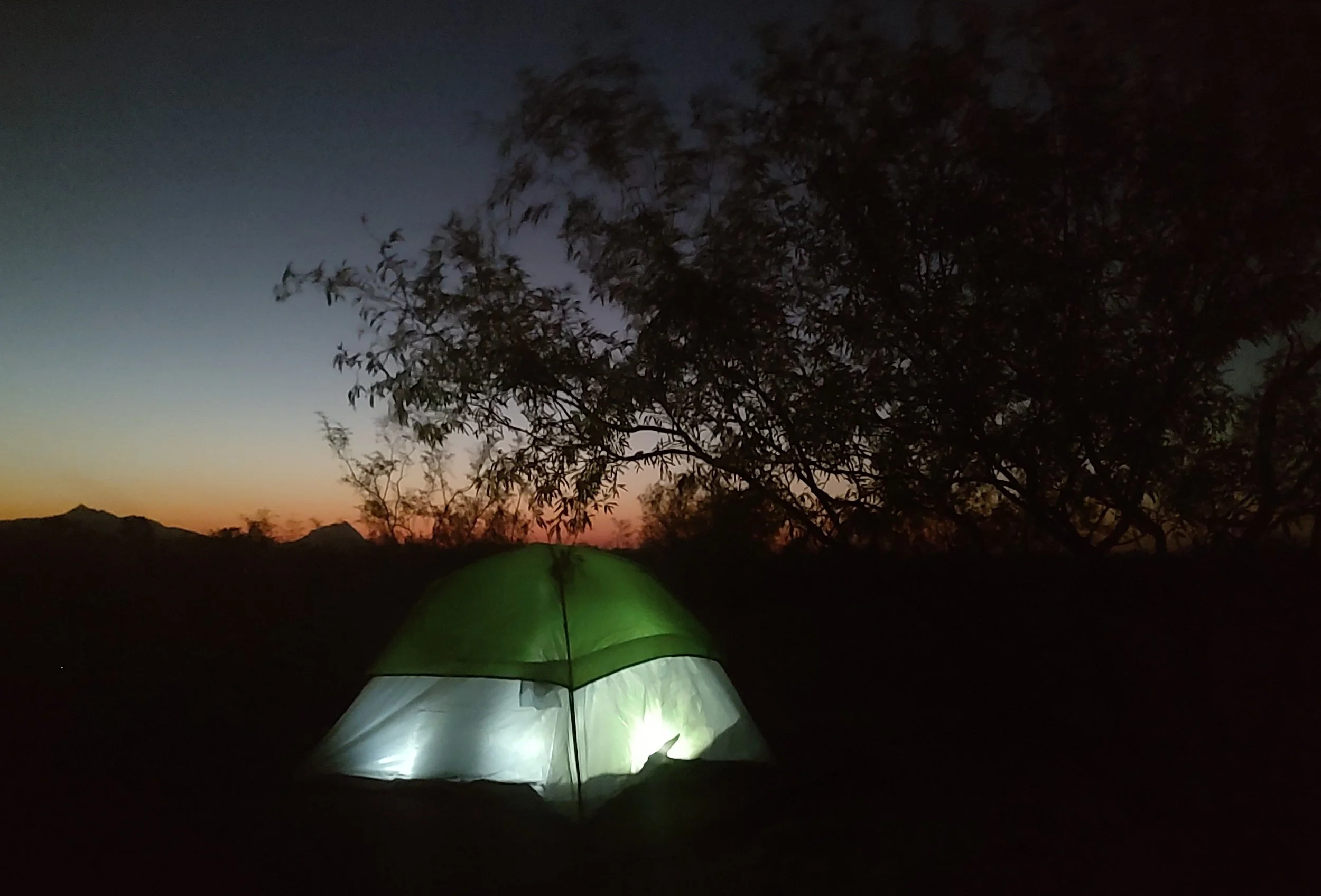 The Gecko site can fit a travel van or up to three motorcycles. The raised camp pad will fit 2, three person tents. This site is wonderfully shaded by three large mesquite trees and is near The Barn